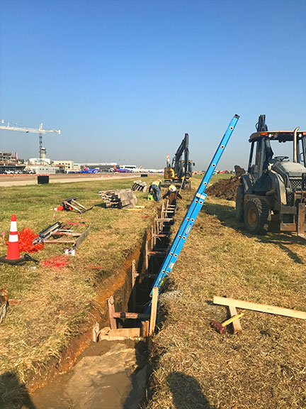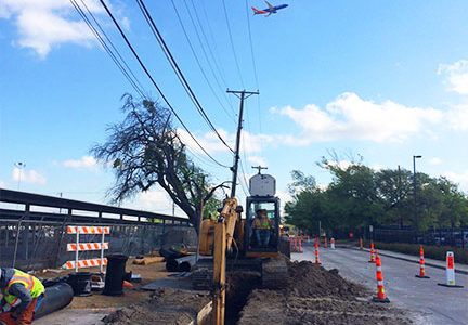 John Burns Construction Company of Texas was contracted to install waterline and sanitary sewer in and around active areas of Love Field Airport in Dallas, Texas. The purpose of the project was to abandon an existing waterline from under the active runways and reroute a new waterline and sanitary sewer around the exterior of the airport.